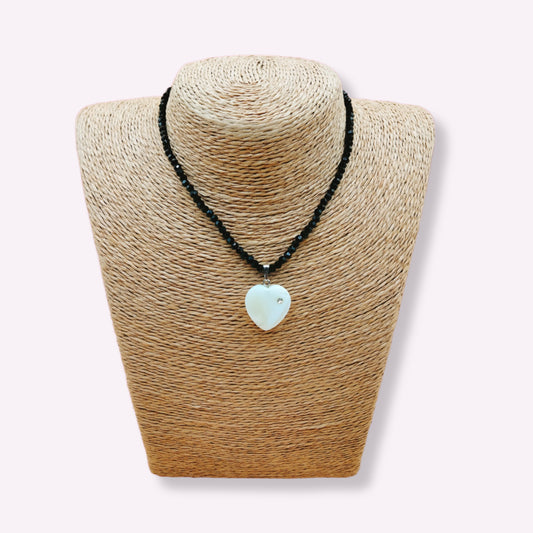 Collier, ras du cou en perle facette, pendentif coeur