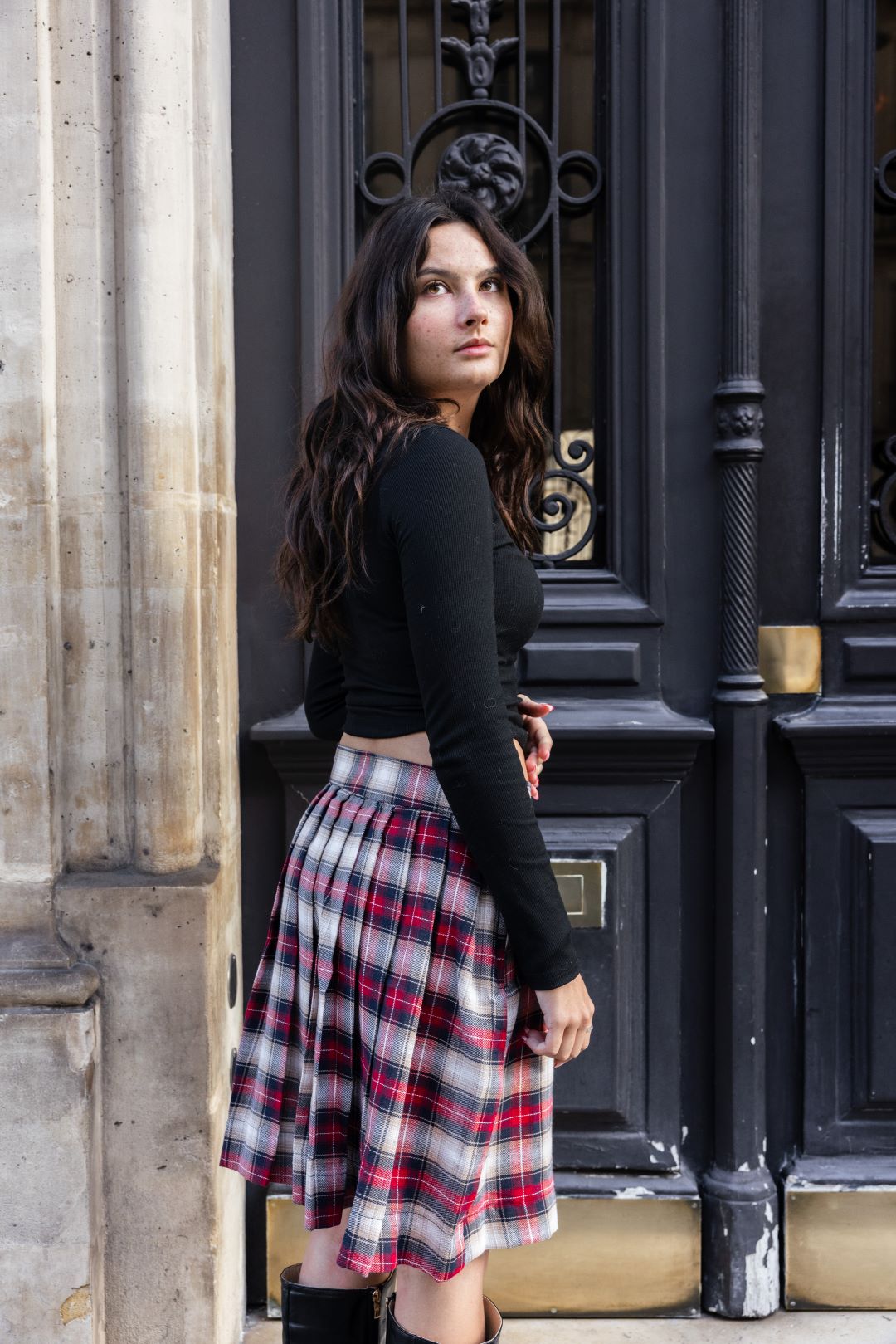 Motif Tartan Authentique : Un tissage à carreaux rouges, noirs et blancs, pour un style intemporel.